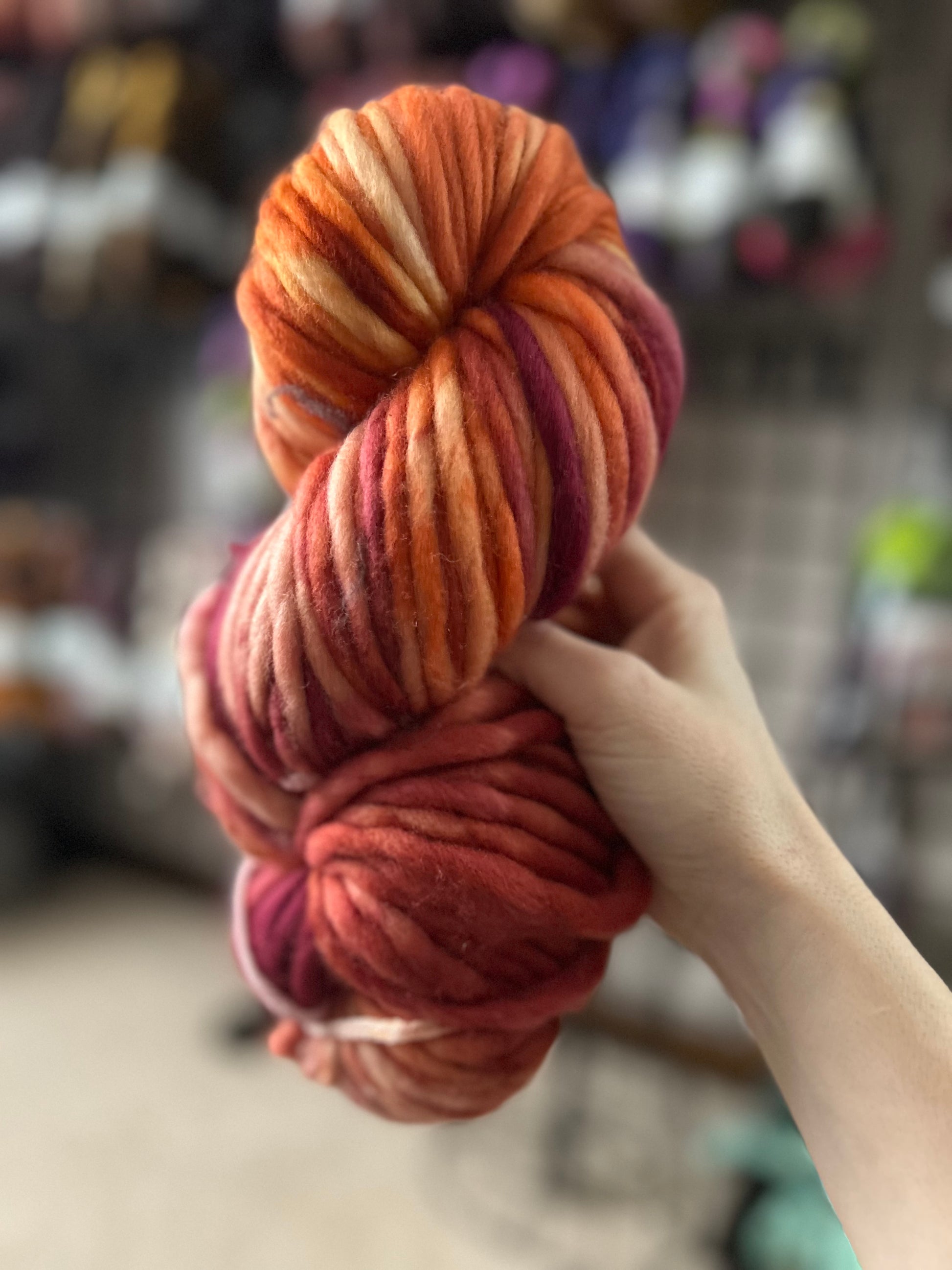 Single-ply super bulky weight merino, plus a superwash! This is my go-to yarn for quick knits for blankets, super fast hats that look adorable with pom poms and super chunky knits that you want to cuddle up with.