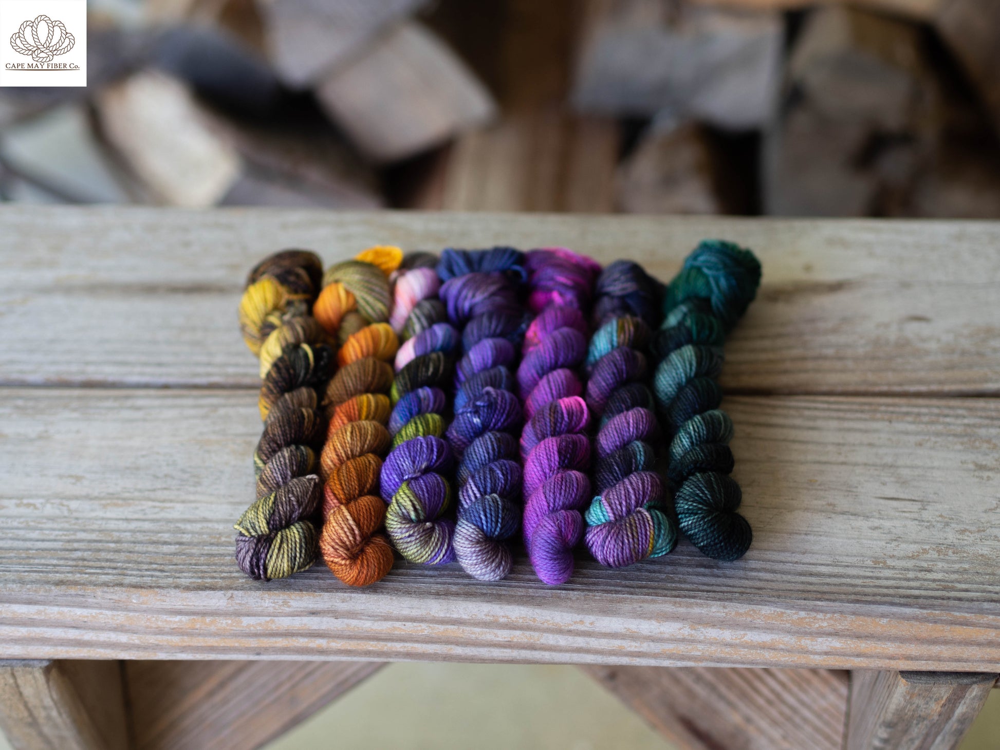 - 7 mini skeins of hand dyed yarn inspired by the characters.